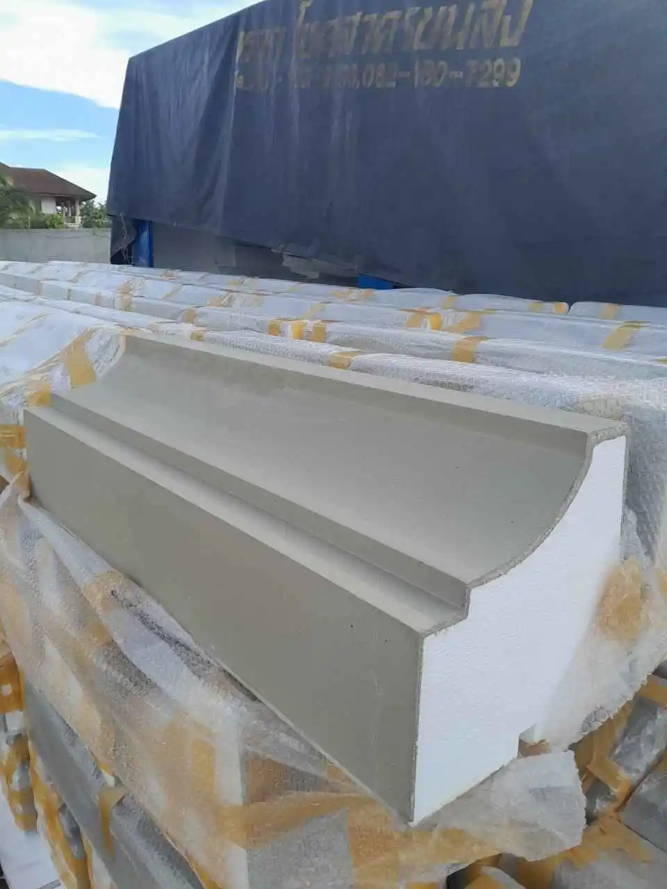 คิ้วบัวโฟมเป็นวัสดุตกแต่งอาคารที่ผลิตจากโฟม EPS เคลือบผิวด้วยปูนซีเมนต์สูตรพิเศษ แข็งแรง น้ำหนักเบา และทนแดดฝน เหมาะกับการตกแต่งขอบหน้าต่าง ประตู หรือผนัง ช่วยเพิ่มความเรียบร้อยและความหรูให้กับอาคาร